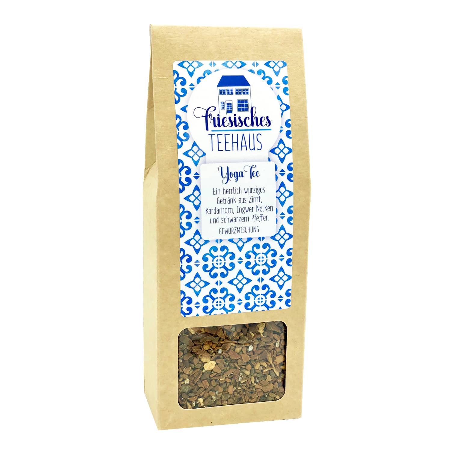Ein herrlich würziges Getränk aus Zimt, Kardamom, Ingwer, Nelken und schwarzem Pfeffer. Zubereitung: 1 gehäufter Teelöffel Yoga-Mischung in 1 Liter Wasser geben. Den Tee bedeckt ca. 25 Minuten köcheln lassen. Dann den Tee abseihen und je nach Geschmack mit einem 1/4 Liter Milch übergießen.