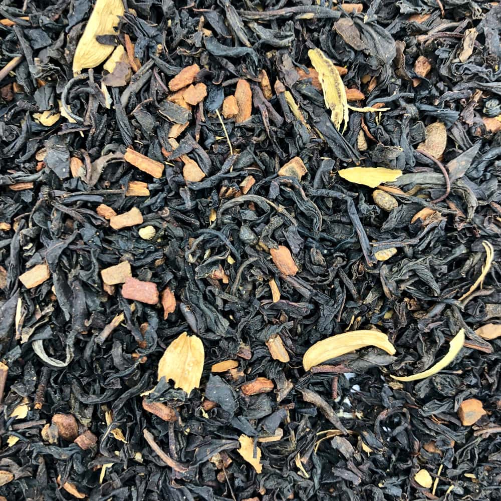 Feinwürzige Schwarzteekomposition, die ich jeden Morgen trinke, am liebsten mit Hafermilch. Macht gute Laune und wach.