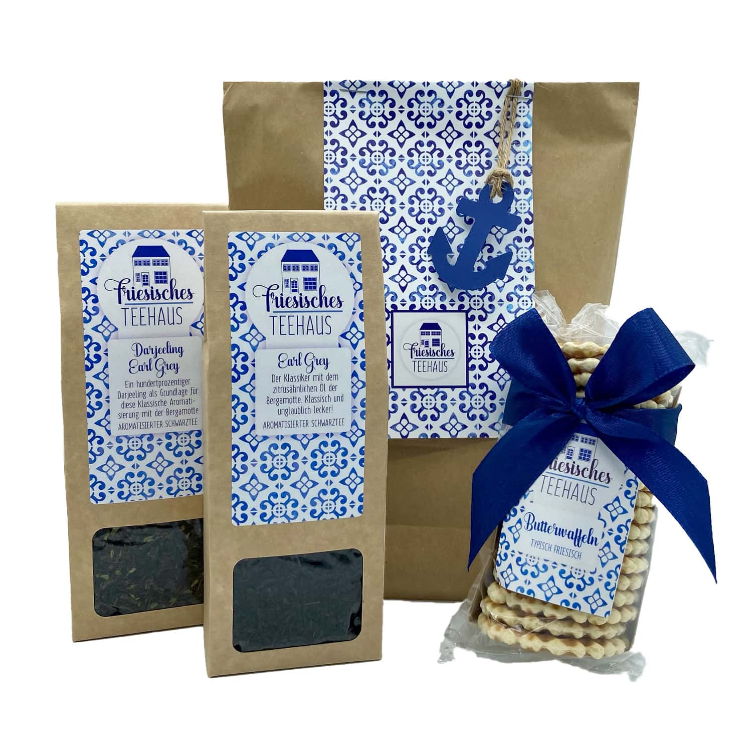 Mit unserer Geschenktüte 'Teestunde Earl Grey' ist es einfach, Earl Grey Fans zu begeistern. Ein klassischer Schwarztee Earl Grey, ein herrlich milder Darjeeling Earl Grey und leckere Butterwaffeln laden zur Teestunde ein. Die ansprechende Geschenktüte wird dem Paket lose beigelegt, damit sie beim Transport keinen Schaden nimmt - sie ist sehr einfach mit einem Hefter zu verschließen.