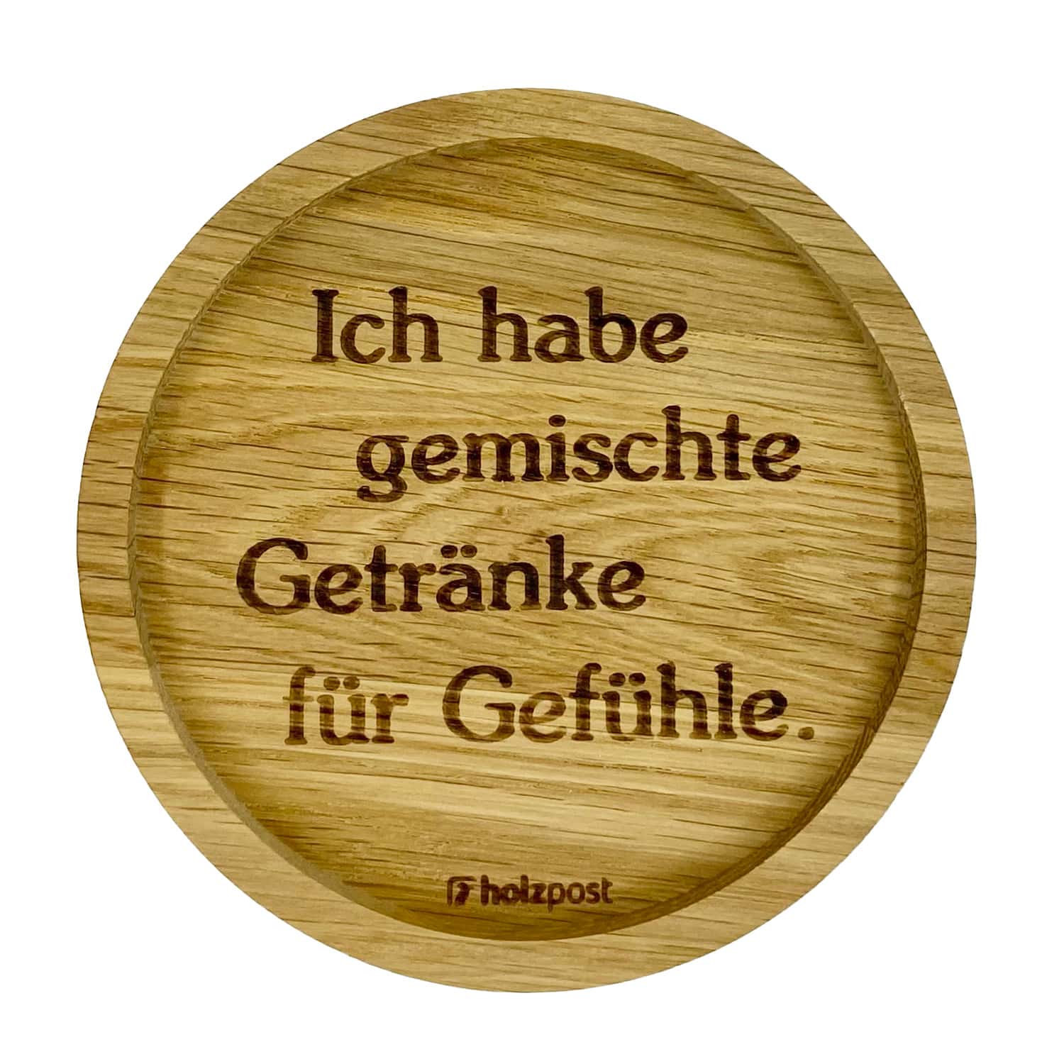 Untersetzer aus edlem Eichenholz, graviert und geölt. Ideal zum Schutz von empfindlichen Oberflächen - als Glas- oder Flaschenuntersetzer. Mit vielen witzigen Sprüchen erhältlich. Bitte beachten Sie: Holz ist ein Naturprodukt - jeder Untersetzer fällt in Maserung und Farbe individuell aus.